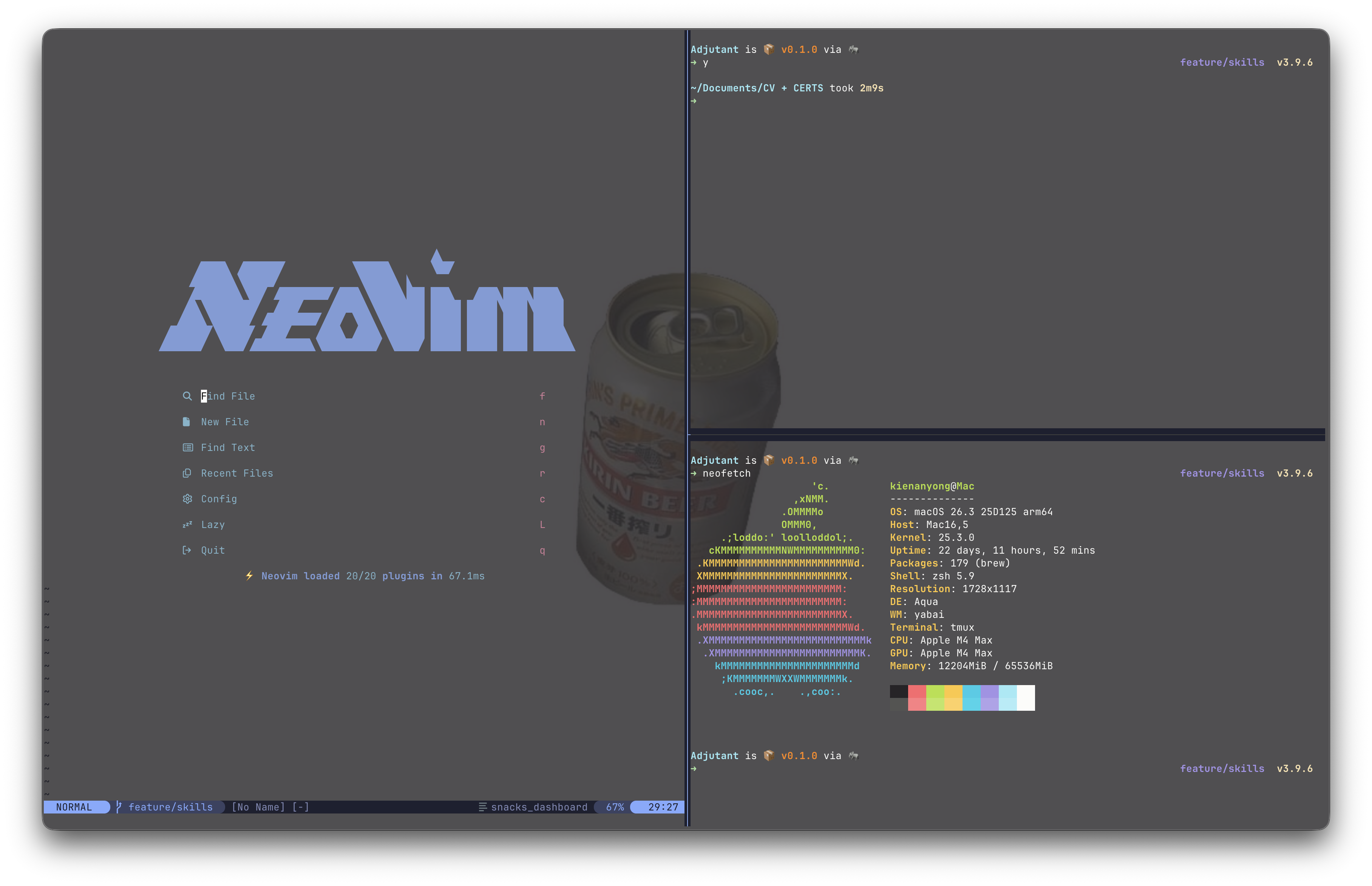 I don’t really have a preference for terminal emulators, I just used ghostty because I was watching someone’s YouTube video and thought it looked good. So far so good. It also allowed me to set a custom background with no problem so points for that I guess.