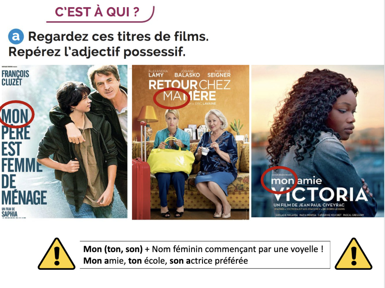 See also: LES ARTICLES LES POSSESSIFS