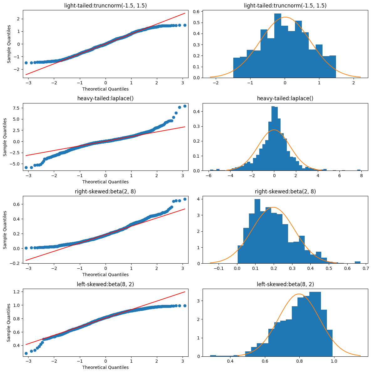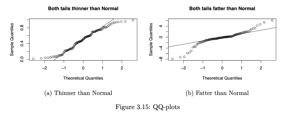 - plot: theoretical (x-axis) vs empirical (y-axis)