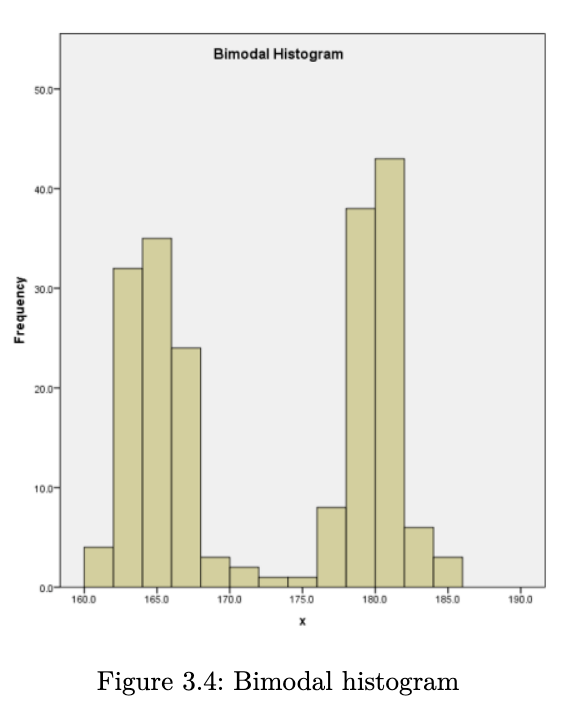 - does the data have a single mound or peak? if yes, then we have what is known as a unimodal distribution. data with two peaks are referred to as bimodal, and data with many peaks are referred to as multimodal.
