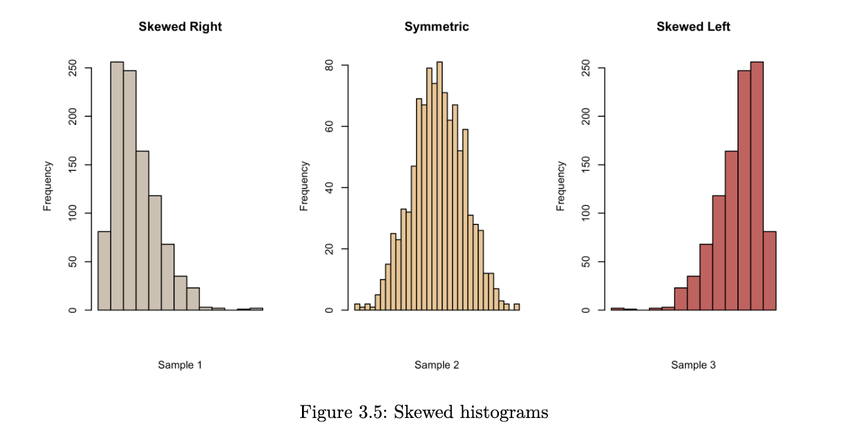 - conversely, if the mean is much smaller than the median, we probably have a left-skewed distribution