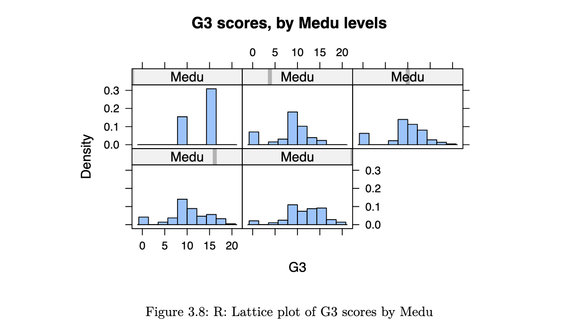 main="G3 scores, by Medu levels", as.table=TRUE)