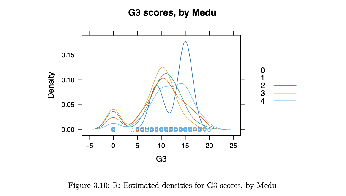 densityplot(~G3, groups=Medu, data=stud_perf, auto.key = TRUE,