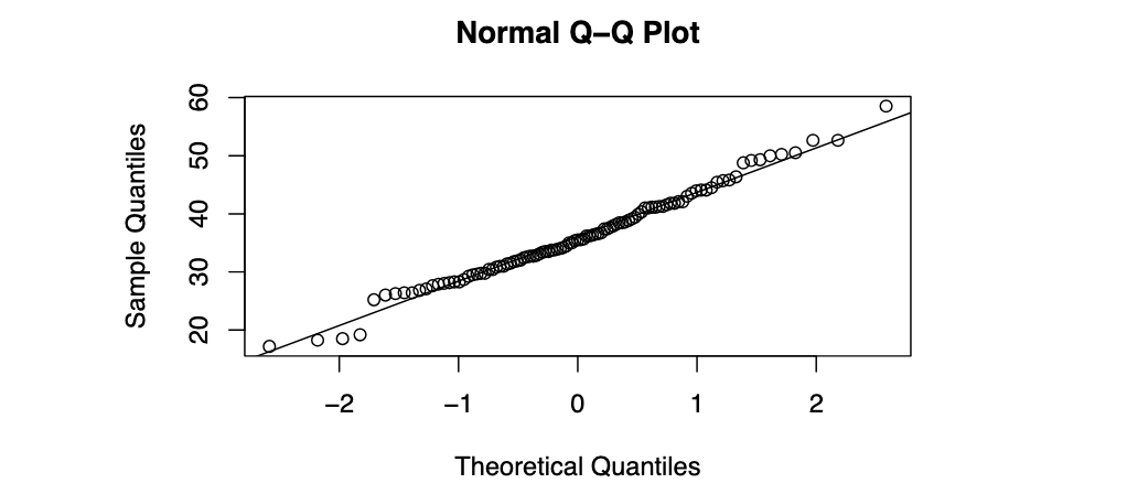 - get theoretical normal quantiles: qnorm(i/n)