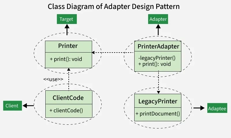 - Adaptee: The existing class with an incompatible interface that needs integration.